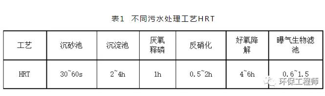 HRT即平均水力停留時間,指待處理污水在反應器內(nèi)的平均停留時間,也就是污水與生物反應器內(nèi)微生物作用的平均反應時間,為反應器有效容積與進水量的比值。對于生物處理,HRT要符合相應工藝要求,否則水力停留時間不足,生化反應不完全,處理程度較弱;水力停留時間過長則會導致系統(tǒng)污泥老化。
