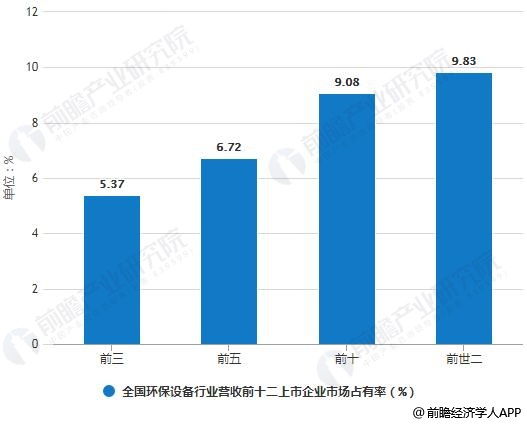 2017年全國環(huán)保設(shè)備行業(yè)營(yíng)收前十二上市企業(yè)市場(chǎng)占有率統(tǒng)計(jì)情況