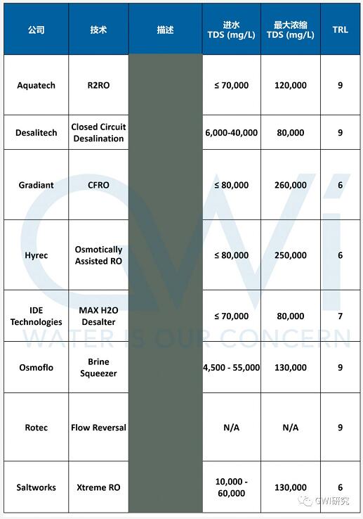 下表列出了目前市場上使用RO技術(shù)進(jìn)行鹽水濃縮的一些領(lǐng)先公司及其產(chǎn)品: